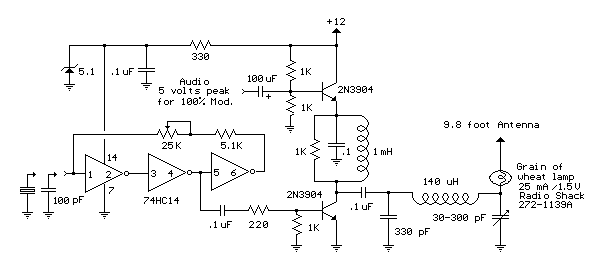 place of the crystal for VFO operation. Amplitude modulation is