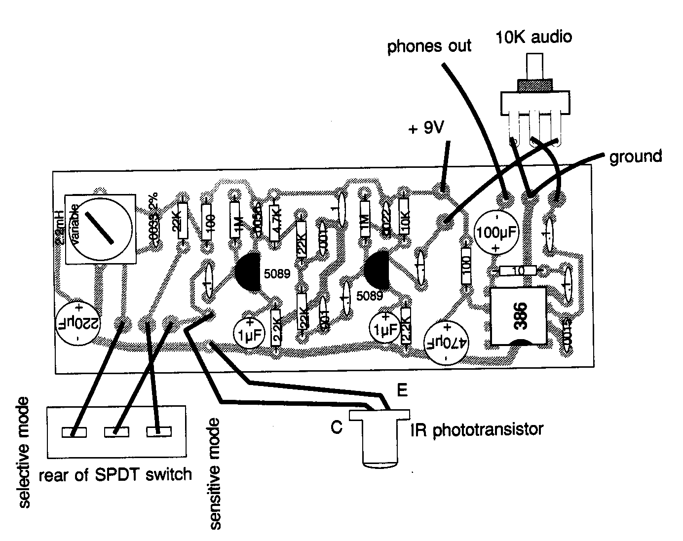 Sensitive mode requires total darkness; selective mode gives good rejection of ambient light. Prototype tested w/L14G3 & Radio Shack